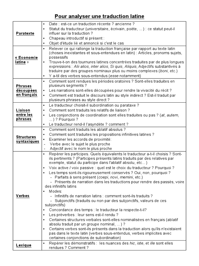 Analyser Une Traduction Latine Pdf Phrase Verbe