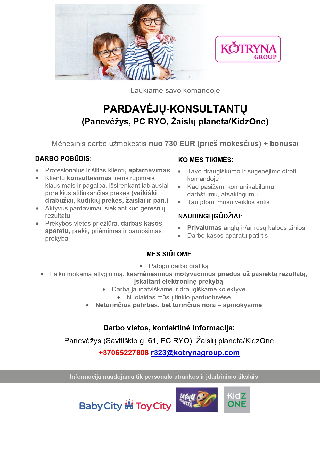 Vacancy Pardavėjai Konsultantai ės Panevėzys Pc Ryo Zaislų Planeta Kidzone Panevėzys Panevėzio Rajonas Kotryna Group Uab Cv Online
