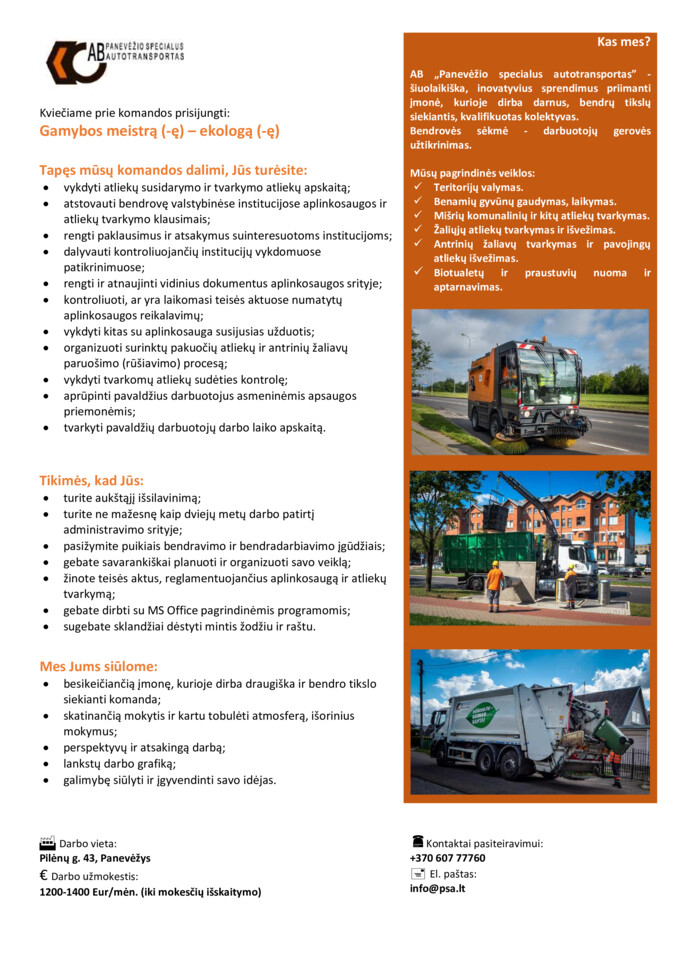 Vacancy Gamybos Meistras ė Ekologas ė Panevėzys Panevėzio Rajonas Panevėzio Specialus Autotransportas Uab Cv Online