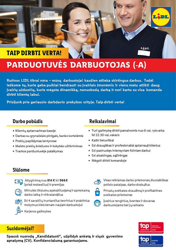 Vacancy Pardavėjas A Panevėzyje Panevėzys Panevėzio Rajonas Lidl Lietuva Uab Cv Online