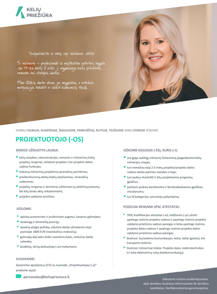 Vacancy Projektuotojas A Panevėzys Panevėzio Rajonas Ab Kelių Prieziura Cv Online