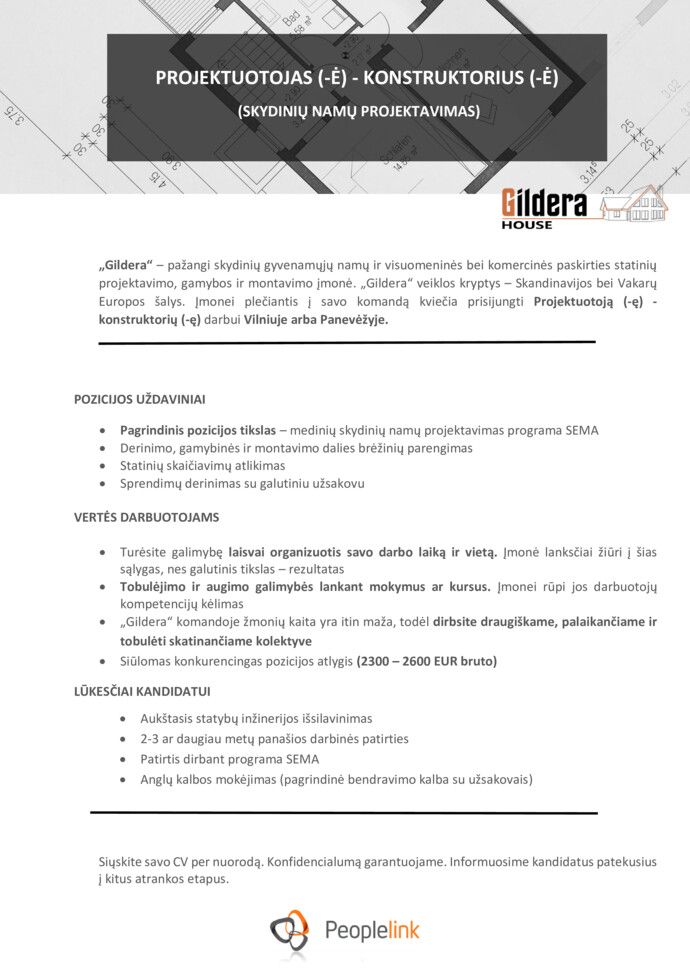 Vacancy Projektuotojas ė Konstruktorius ė Skydinių Namų Projektavimas Panevėzys Panevėzio Rajonas People Link Uab Cv Online